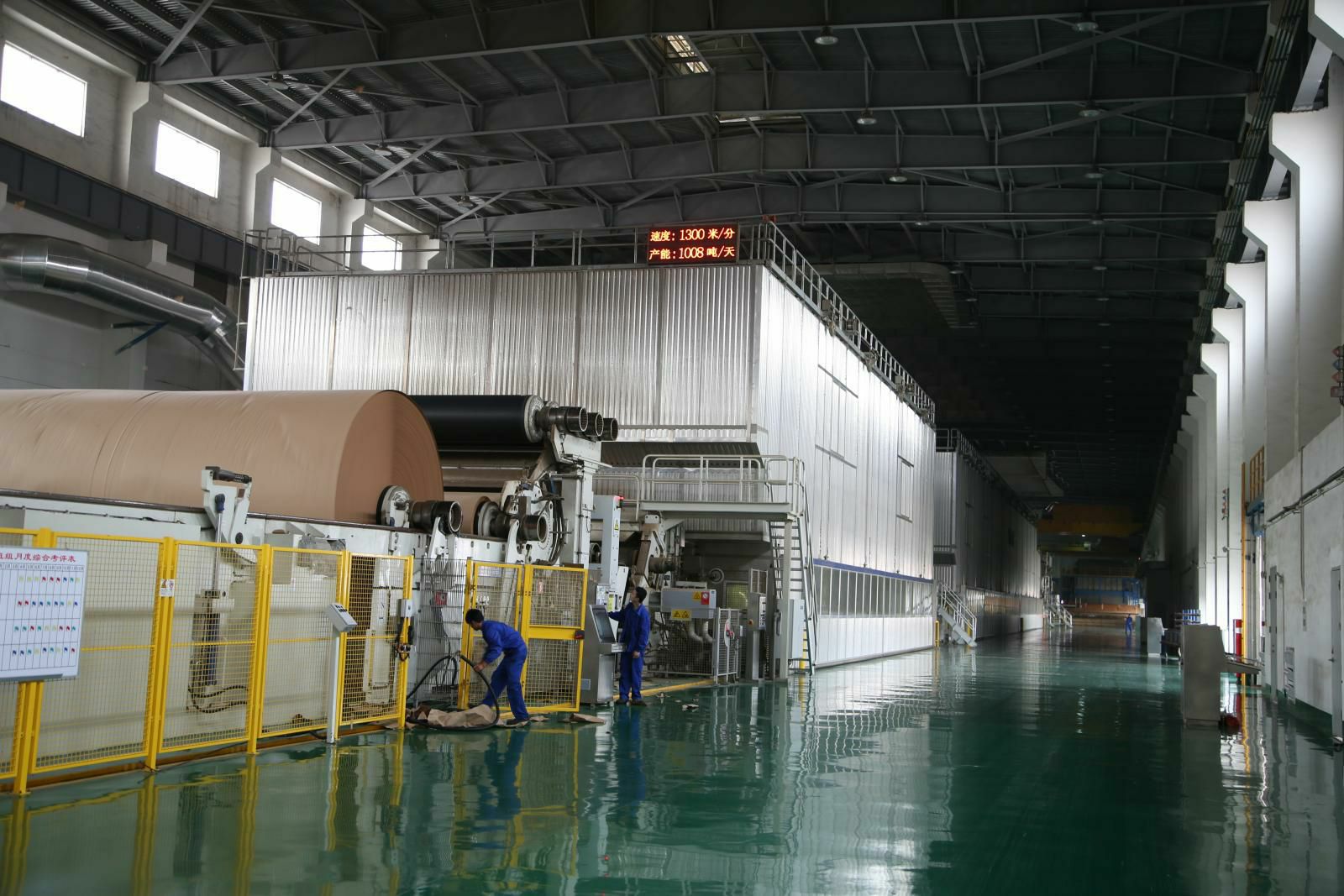 PM6造纸生产线,纸机是从芬兰美卓引进的专业瓦楞纸生产设备,是全球第一台 Opti Concept 纸机,幅宽6.6米,设计车速1200米/分,目前最高运行车速已达1250米/分,主要生产50-130克的瓦楞纸,年产量35万吨,有效拓展了公司产品的品种,快速提升了公司包装业务的综合实力。